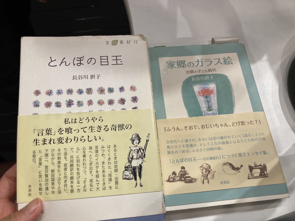 斎藤さんが紹介されていた、未来社から出ている長谷川さんのご著書『とんぼの目玉』『家郷のガラス絵 -出雲の子ども時代』もぜひ読んでみたいと思いました。みずみずしい感性で子どもたちにも直に触れながら、読み手としても書き手としても大変な才能の持ち主だったことが想像される長谷川さん。4人もお子さんがいらしたとのことで、母親としても大先輩であり、児童文学者としてのものの見方や姿勢、文庫や読み聞かせ活動のその奥にある真意や情熱について、ぜひ知りたいと思いました。