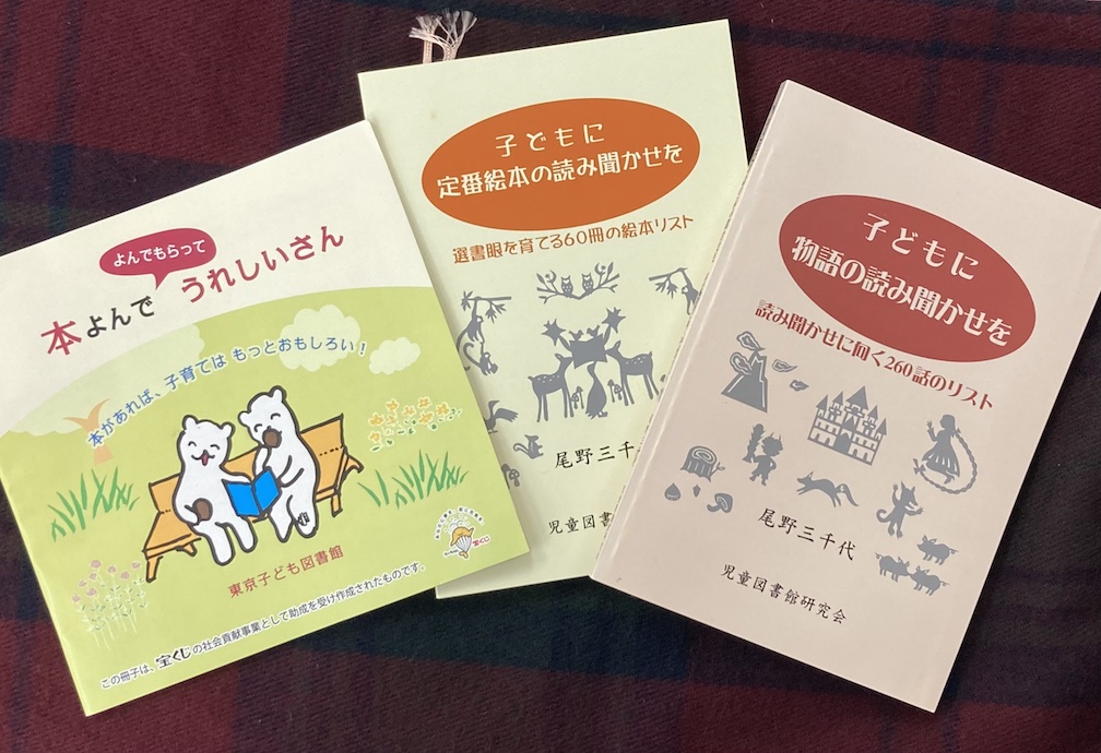 ・(※)まず文庫を始めるという時に、おすすめするとしたら、東京こども図書館が出しているブックリスト、銀座にある子どもの本のみせ「教文館/ナルニア国」で常時取り揃えたいと努力しているという本が掲載されている児童図書館研究会刊『子どもに物語の読み聞かせを ~読み聞かせをに向く260話のリスト~』、『子どもに定番絵本の読み聞かせを ~選書眼を育てる360冊の絵本リスト~』あたりが参考になると思う。