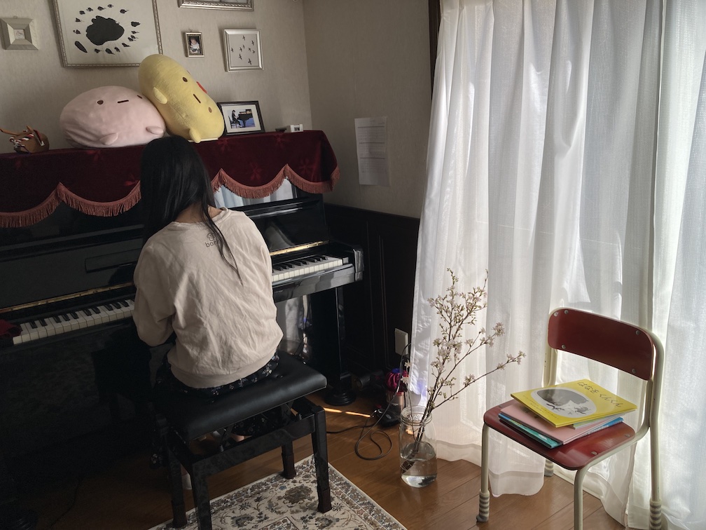 この後子ども達がまだ興奮気味だったので、読み聞かせをする前に少しクールダウンしてもらおうと、娘にピアノで「ムーン・リバー」(1961年の映画『ティファニーで朝食を』でオードリー・ヘップバーンが歌った劇中歌)を弾いてもらいました。最近弾き始めたばかりの曲でしたが、嫌がらずに披露してくれました。