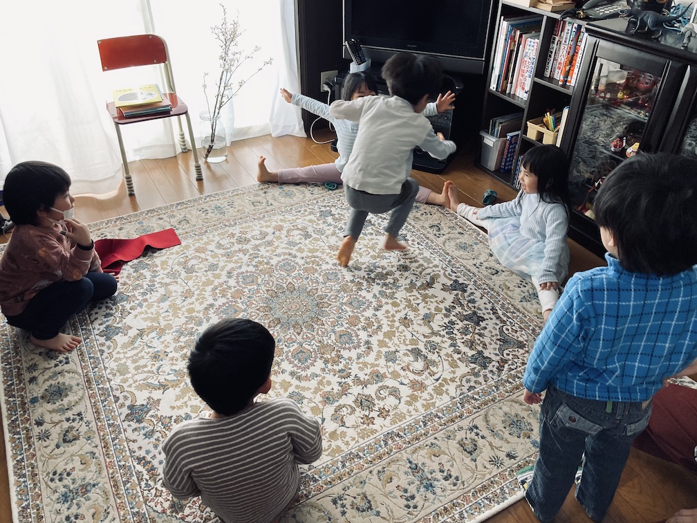 13時半からスタートした今回。息子の保育園友達(4歳児)5人に来てもらうことになっていたのですが、自宅に友達を呼ぶこと自体が初めてだったので、当日息子は朝起きて文庫の始まりまでの時間が長すぎて「待ちきれない!!」状態。きっとお友達も朝からソワソワ、わくわくしてくれていたと思うのですが、午後までひっぱったのは良かったのか悪かったのか…。今後、色々な時間帯で試してみようと思います。