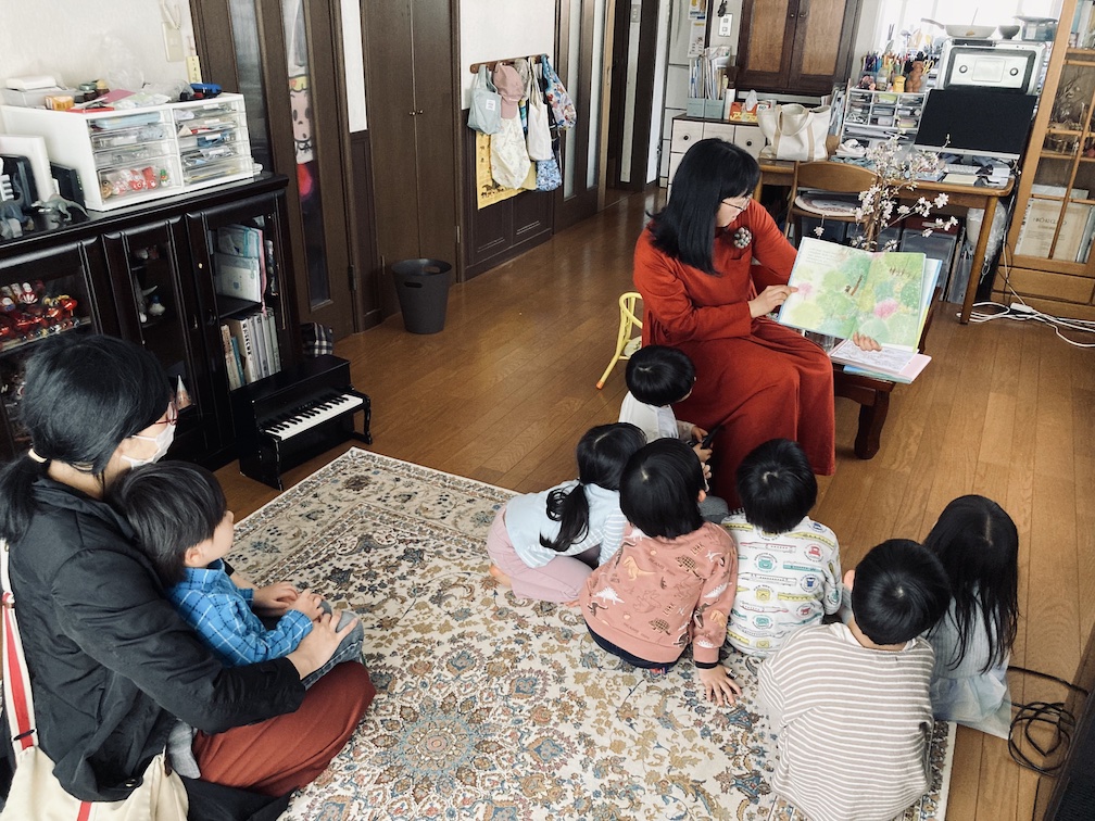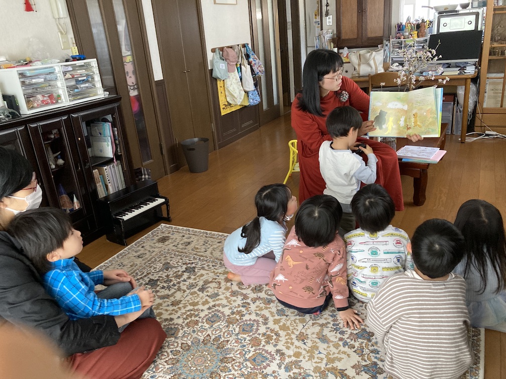そして空気が落ち着いたところで、いよいよ読み聞かせをスタート。3月の会のテーマは「春のめぶき」。最初に一番季節が冬に近く雪がでてくる『はなをくんくん』を。私は子ども達の前で読むのが初めてでドキドキしていましたが、(つい速くなってしまいがちなので)間合いを意識しつつ読みました。子供たちの反応まで見ている余裕がなかったものの、絵本が好きなんだろうなとわかるくらいには、こちらの方をじっと見て聞いてくれました。