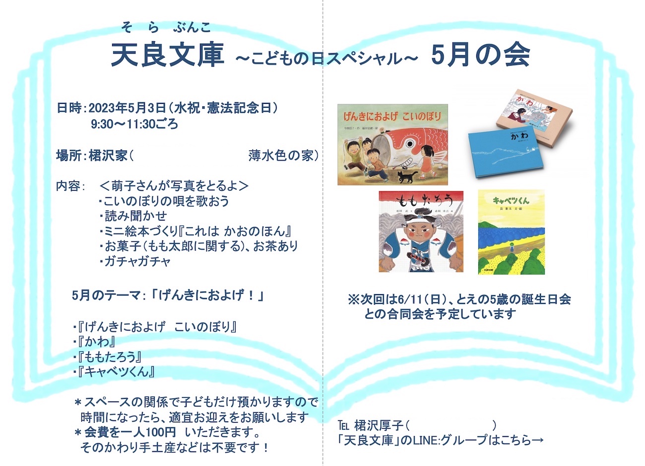 次回、天良文庫の開催日が5月3日(水・祝)に決まりました!(詳細は一番下へ↓)
