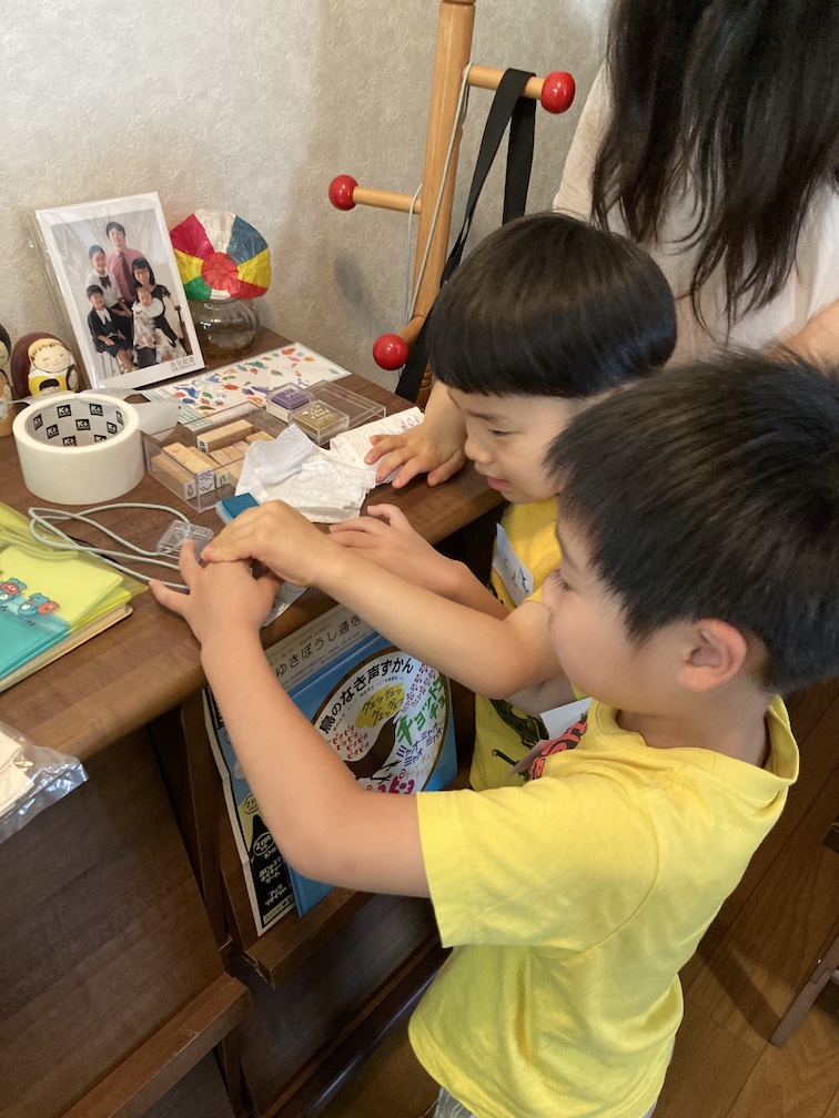 その後は、DVD『モアナと伝説の海』を鑑賞しようと用意していたのですが、もうこの頃になると、子ども達はおもちゃ遊びに夢中…。狭い家の中をチャンバラごっこで走り回ったり、ドーナツ屋さんで遊んだりいつもの遊びに汗しながら、有り余るエネルギーを発散させていました。なのでこれにて7月の会も無事終了です。