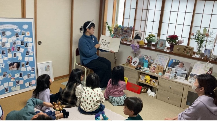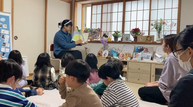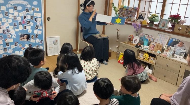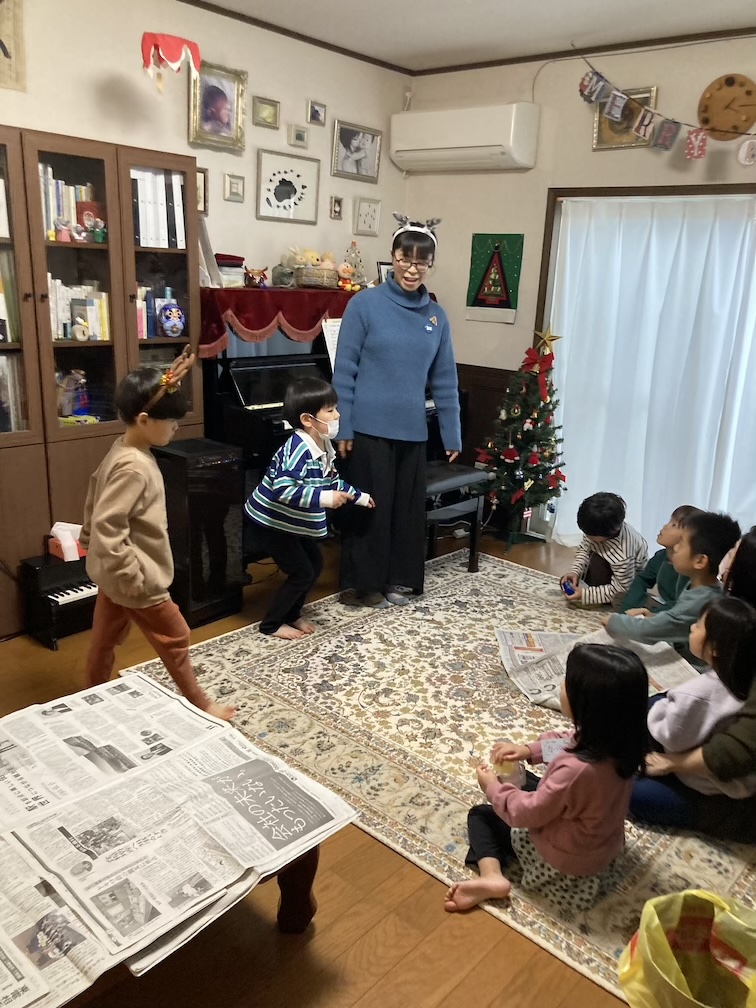 今回は「読み聞かせ」の前に〝音楽の時間〟をつくりました。中2の娘・直がピアノでドビュッシーの「月の光」を披露し、それからクリスマスソングの「ジングルベル」をみなで歌いました!ピアノ曲は5分位と長いのですが、子ども達、最後まで聞いてくれました。娘も子ども達もありがとう!幻想的で調和のとれたドビュッシーの調べに耳を傾けると心が落ち着いてきて…とてもいい時間でした。保育園では先生がうたやリトミックなどでピアノを弾いてくださる場面もあるかと思いますが、5歳前後ではなかなかコンサートに足を運ぶ子は少ないと思うので、こうして生でクラシックのピアノ演奏に触れるのは良いことだなと思います。これからも時折、音楽の時間を作れたらいいなと思います。