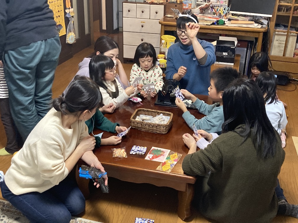 「ビンゴ自体が初めて」という子も中にはいて、また多くの子どもが2桁の数字がわからないので、大人が手伝いながらのビンゴでした。私も久しぶりにビンゴをやって、娘のクリスマス会でしょっちゅう「あー、あの時も大声で番号読んでたな。今もちっとも変わらないなぁ」と過去をなつかしく思い出しながら、楽しむことができました。1回では時間が余りすぎたため、2回目もやることに!