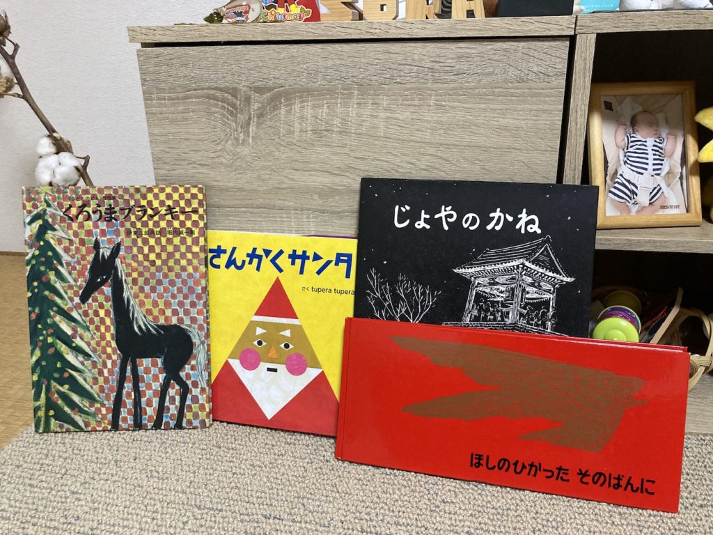 『さんかくサンタ』『ほしのひかった そのばんに』『くろうまブランキー』『じょやのかね』の順に4冊を読みました。