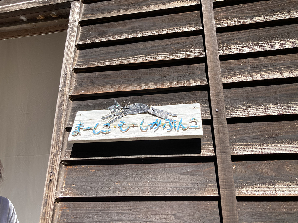 そうそう、石川家にはご夫婦の他にノイジー(犬)さん、コットン(黒猫)さんもいました。かわいらしい2匹の名前は『がちょうのペチューニア』の絵本からいただいたそう。前には黒猫のピッチ(こちらも絵本『こねこのぴっち』がありますね)さんもいたようで、そういえば、入り口のドア横の看板「まーしこ・むーしか文庫」には黒猫が描かれていましたし、文庫のマークにも猫が登場していました。実は、猫ちゃんがここの主だったりして!文庫の部屋に接続する居間をちらりと覗いたら、コットンさんとばっちり目が合いました。またぜひ会いに行きたいなと思います!