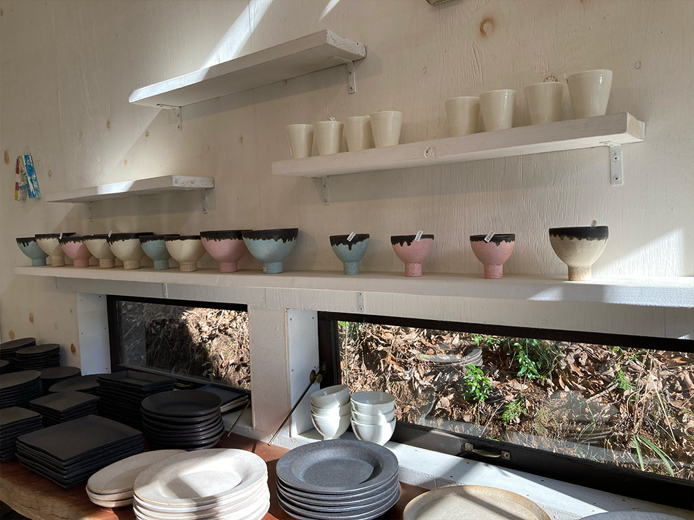 帰り際、お二人(綾子さんも陶芸をされる)の工房やギャラリー〝waka studio〟も見せていただき、焼き物好きな私たち夫婦はお土産にいくつか購入して帰りました。若彦さんは天良にも1つ素敵な作品をプレゼントしてくださりました!感謝(涙)。うつわを使うたびに、この日のことをきっと思い出すのだろうなと思いながら・・・。