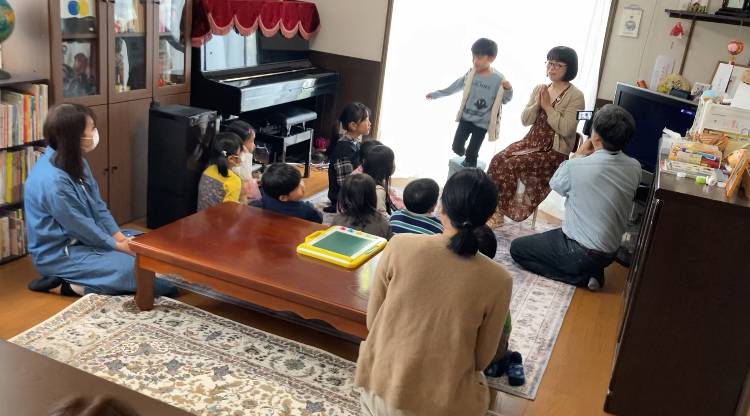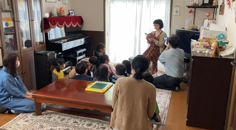 最初は詩の時間からスタート。今回はいつもの朗読に加え、その詩が合唱曲にアレンジされたものがあったので、それをCDで流して耳でも味わいました。同じ詩のことばでも、音楽になることで全然違ったものになり、その違いや面白さを子ども達にも感じてもらえたら…という意図でやってみました。