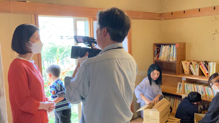 今回は、なんとNST(新潟総合テレビ)さんが天良文庫を取材してくださるということで、撮影担当の方(実は数年前、我が家に取材で来てくださったことのある知り合いのTさんでした!)がオープン前からいらっしゃり、じっくり丁寧に撮影いただきました。いつもと違う雰囲気に多少緊張気味だった文庫メンバーたちもすぐにカメラに慣れ、いつも通りの姿を見せてくれました。