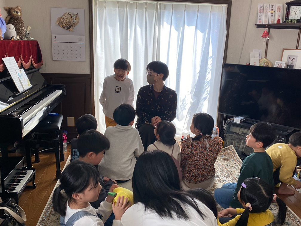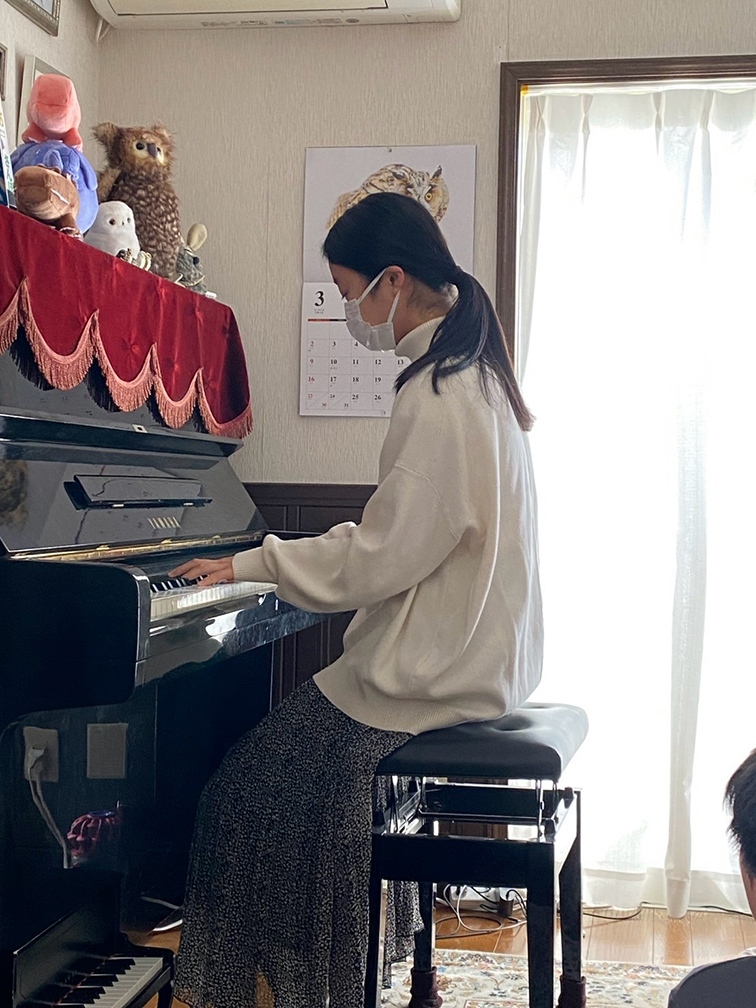 その後、受験も終わり高校が決まってホッとした文庫のお姉ちゃんこと、長女の直にひさびさに人の前でピアノを弾いてもらいました。受験期、習い事のピアノは少しお休みしましたが、家ではよくピアノに触れていました。そんな中練習したラヴェルの「プレリュード(ホ短調)」を披露。