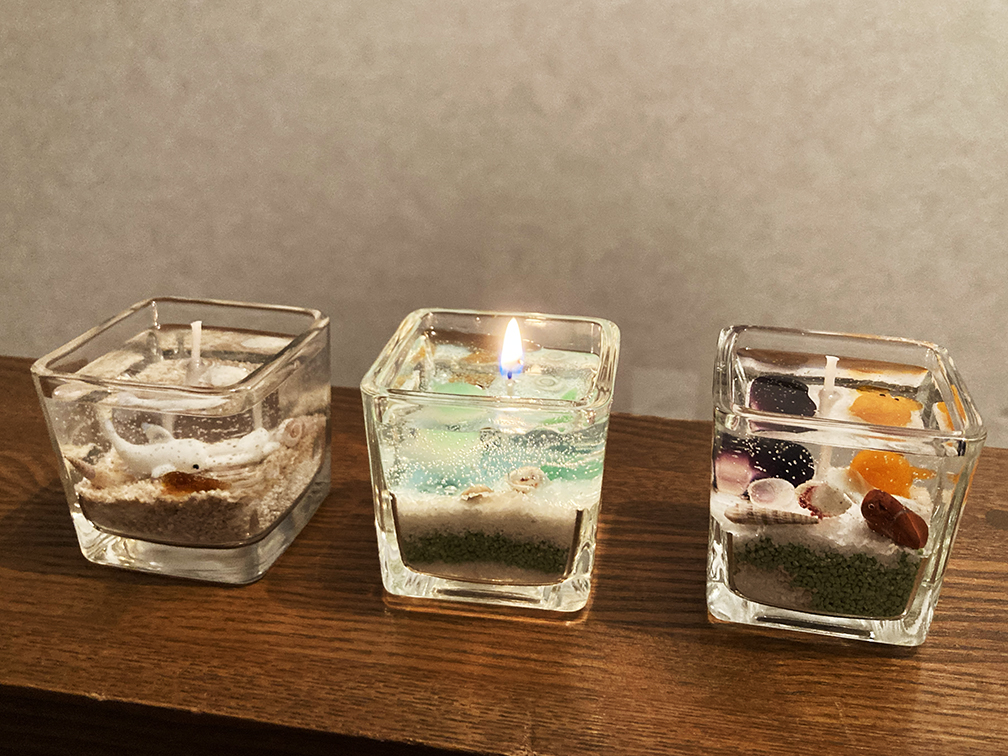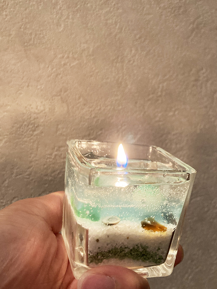 絵本の後は、創作のじかん!今回は「海べのキャンドル」づくりをやります!ジェルキャンドルというプルプルしたジェル状のろうを、ガラス容器の中に好きなパーツ(貝殻、ガラス細工、石、ビーチグラス、陶片)と砂で飾りつけした上に流し込みます。キャンドルを流し込む作業は熱いので大人が行いますが、飾りつけを各々楽しんでもらい、目にも涼しげな海辺をイメージした作品を作れたらと思います⭐︎どうぞお楽しみに!!